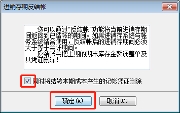 在弹出的窗口,如果是结合使用的账套,建议勾选同时删除结转成本的凭证,然后点击确定
